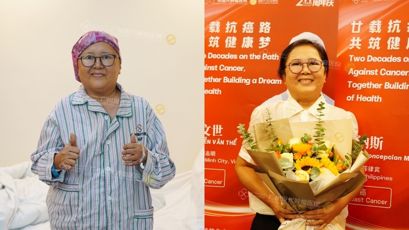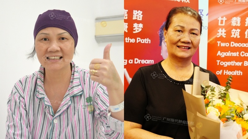 2014年9月,严女士确诊肺癌。在越南当地医院治疗无果后,来到广州现代肿瘤医院,入院检查确诊左肺低分化腺鳞癌,并伴有胸膜及纵膈淋巴结转移。经过整合微创介入治疗,病情明显好转。治疗结束至今,身体一直保持着良好的状态。现已成功抗癌11年。