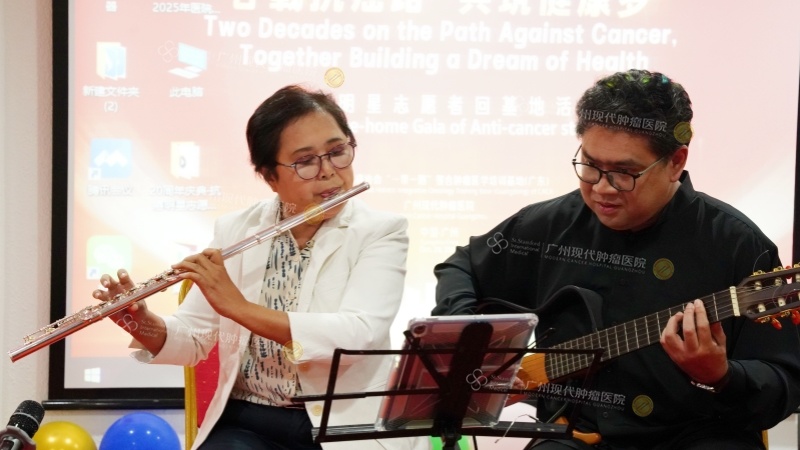 值得一提的是,来自菲律宾的乳腺癌患者维纳斯和丈夫,现场配合演奏了一首优美动人的曲子,悠扬的旋律仿佛诉说着所有抗癌勇士们的心声——生命,在历经风雨后,依然可以奏出华美的乐章。