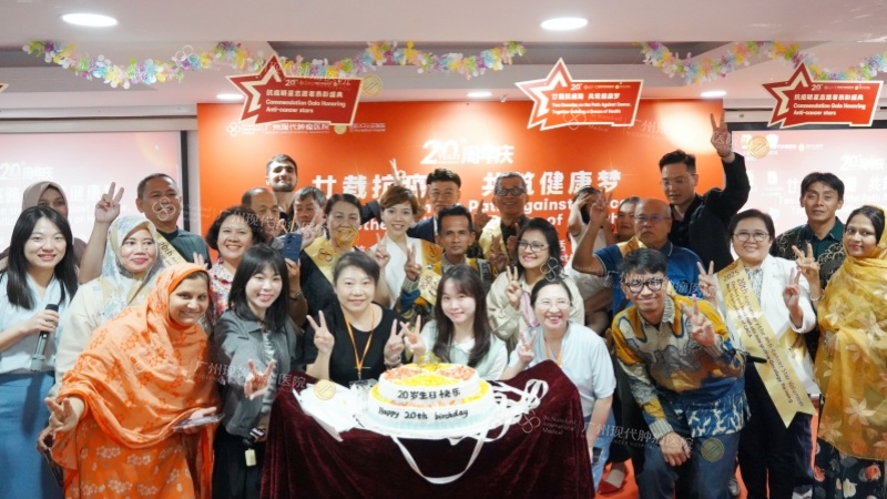 2025年10月28日,中国抗癌协会“一带一路”整合肿瘤医学国际培训中心——广州现代肿瘤医院迎来了建院二十周年的辉煌时刻。在这具有里程碑意义的年份里,医院特别举办了以“廿载抗癌路,共筑健康梦”为主题的抗癌明星志愿者回基地活动。来自印尼、马来西亚、越南、菲律宾、泰国、蒙古国、哈萨克斯坦、孟加拉等国的十四名抗癌明星志愿者“回家”团聚,与院领导、医护人员及在院患者一同见证了这一温暖而充满希望的盛典!