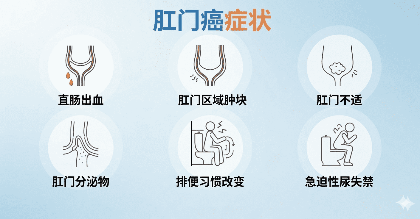 肛门癌的症状常被误认为是痔疮,因此容易延误诊断。常见症状包括:
