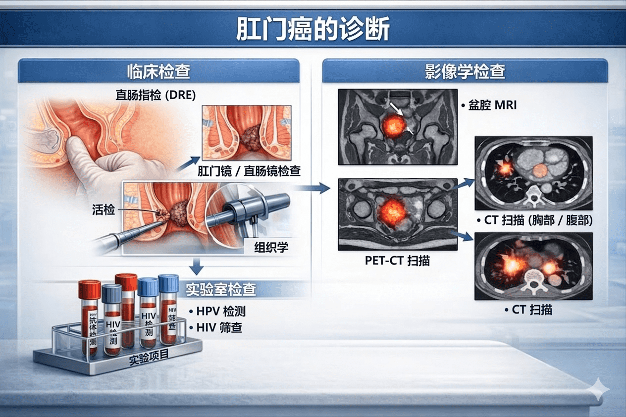 肛门癌的诊断通常需要结合临床检查、内镜评估及影像学检查进行综合判断。