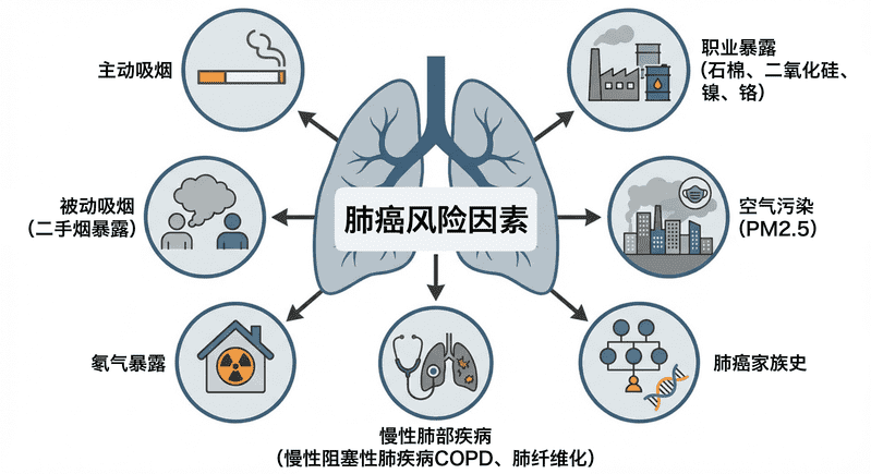 增加罹患肺癌风险的因素包括: