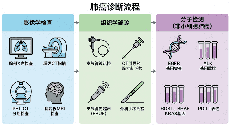 肺癌的诊断需要结合影像学检查与组织学确认。