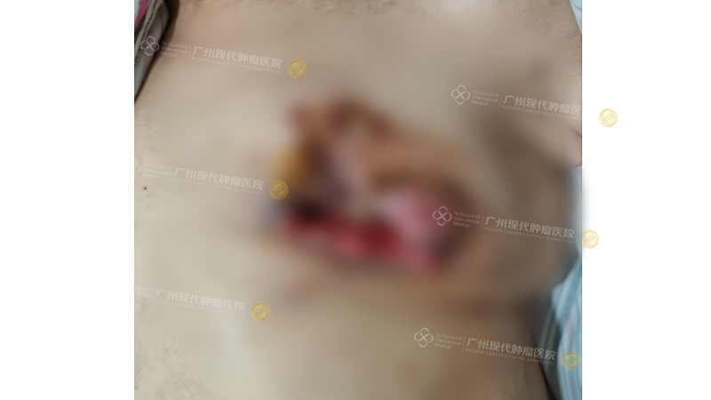 Lorraine’s condition was characterized by a slow onset but rapid progression. Before admission, the massive tumor caused significant disruption to her daily life, eventually ulcerating and bleeding. As her hemoglobin levels continued to drop, she frequently required blood transfusions in Australia. The cancer had taken such a toll that by the time she was admitted, Lorraine had lost 30 kg in three months, and the tumor measured 144x84x145 mm. The medical records described it as a "large, cauliflower-like mass on the left breast, ulcerated and bleeding." The reality was nothing short of shocking.