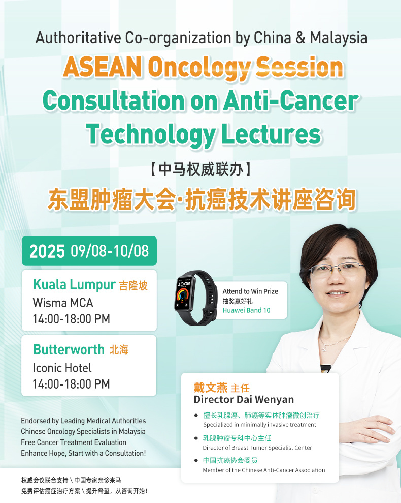 In response to the call of the 2025 ASEAN Anti-Cancer Conference and to enable more Malaysian patients and their families to gain an in-depth understanding of cutting-edge tumor treatment technologies, the Kuala Lumpur Office of Modern Cancer Hospital Guangzhou in Malaysia will host the Minimally Invasive Cancer Prevention and Treatment Technology Sharing Session from [August 9th to 10th]. This event will feature a special appearance by Dai Wenyan, a renowned authority in the ASEAN region, who will share her insights on-site and offer one-on-one consultations to help patients secure personalized treatment plans.